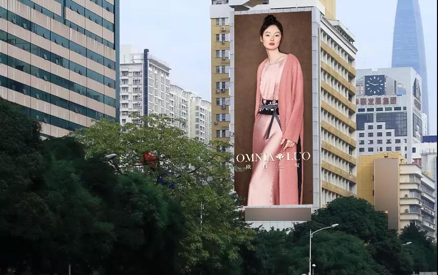 Original Chinese designer brands the BaiLanNu OMNIALUO, strong airborne at shenzhen airport and huaqiang north, riverside road LED outdoor screen, high strength and sustained brand exposure to convey to the audience the brand independent self-confident "elegant, meet the most beautiful yourself" concept.